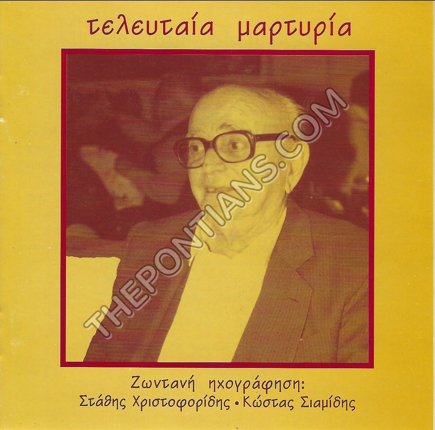 In 1989, he and a group of local personalities of the pontian family of Thessaloniki go on a pilgrimage to the places of the unforgettable homelands of Trapezounta and the other neighbor areas. His experiences from the pilgrimage were sensational. When he comes back he cooperates with SOL - a research center for traditional music- together with the artists Despina Kamberidou and Achilleas Vasiliadis, publishing their work named "Songs of Pontus".